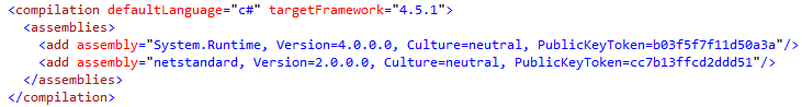 <add assembly="netstandard, Version=2.0.0.0, Culture=neutral, PublicKeyToken=cc7b13ffcd2ddd51"/>