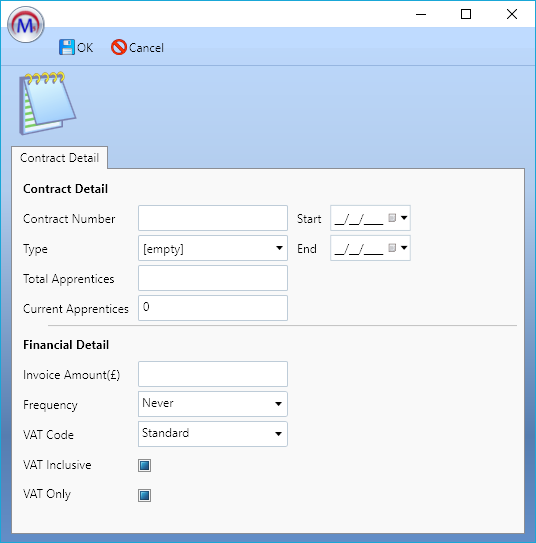 Employer contract terms agreed with a training provider can be recorded against the employer. The terms can then be used for invoicing purposes (note that this requires the Allowances and Payments module).