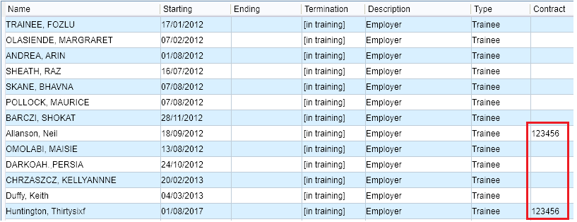 - Contract Number – This can be any number you want providing it is unique from other used contract numbers. This number is then entered against learners to link them to the contract (detailed later in these instructions).