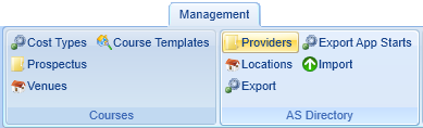 To facilitate this in Maytas, the AS Management module has been created which allows you to enter the required data on the locations and apprenticeships they offer and generate a file to upload to the AS.