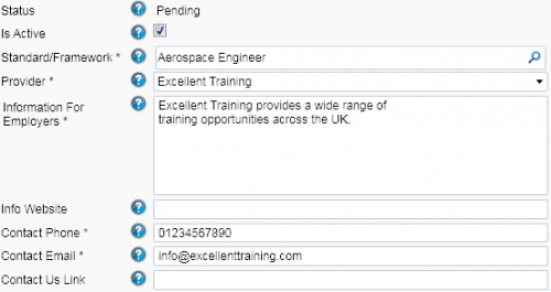 - Add AS entries for the providers, specifying which Apprenticeship standard or framework they apply to.