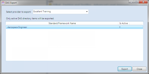 - Select the provider from the dropdown box. This will populate the list of AS entries in the bottom part of the window. All entries which are marked as active will be included in the export.