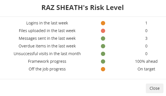 A risk level is assigned to each risk factor, all of which are amalgamated into an overall risk level for a learner. The risk factors for each learner are as follows: