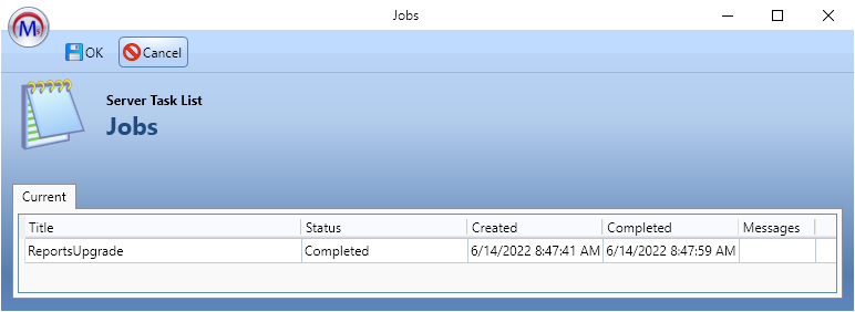 You can check that the upgrade was successful by going to Home on the toolbar and then selecting Server Tasks | View Jobs.