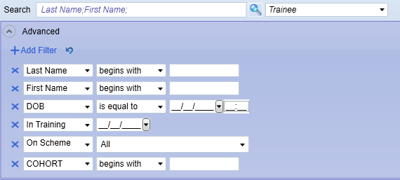 Two blank dropdown boxes will appear for the table and field. Select TRAINEEPOT in the first box and COHORT in the second box.