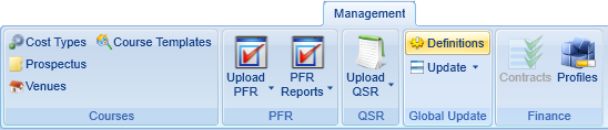 To access the Definitions screen, go to Management on the toolbar and click Definitions.