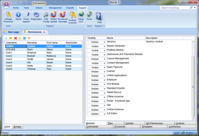 | Force Sync | Enables the Force Sync button on the Support ribbon, which forces all other clients to sync the next time they log into Maytas 5 | |