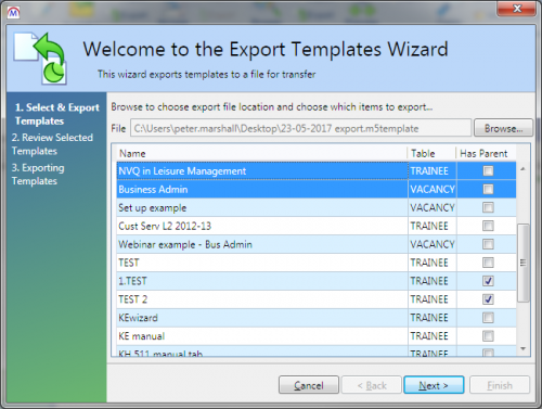 - Select the templates you wish to export (hold ctrl to select multiple templates or hold shift to select all templates between two selections).
