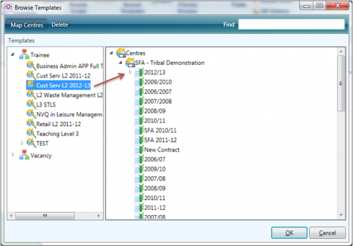 Map Template to Centre / Contract