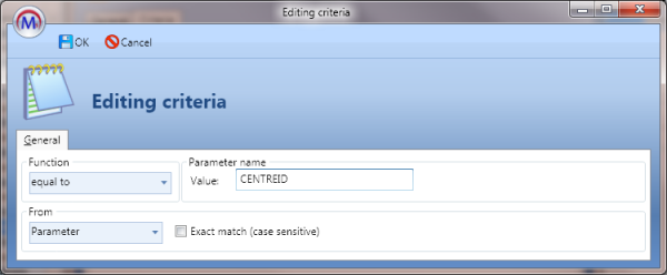 button and select the entry that is added. - Select the required type of criteria from the Function dropdown box.