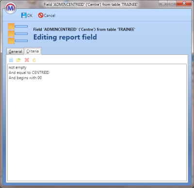 - Criteria – This is used when you wish to compare the field to a fixed value. Once selected, a box will appear for you to enter the fixed value.