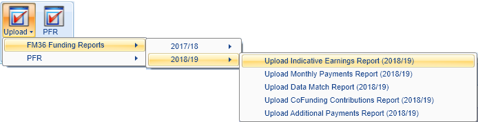 On the PFR section of the ribbon, click Upload and select the required 2018/19 PFR import option: