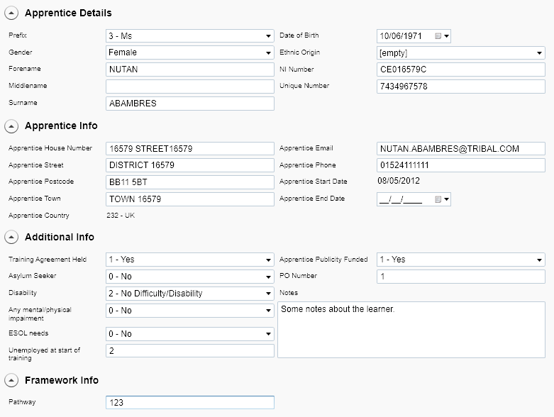 - When a row is updated or inserted, Maytas checks if a matching learner record exists based on National Insurance number and expected end date (compared against TRAINEE.NINUMBER and TRAINEEPOT.EXPCOMPLETIONDATE). If a learner record does not exist, a new one is created using data from the import. If a learner record does exist, it is updated with any changes from the import. Details of field mappings can be found below.