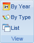 By default, the list of profiles is grouped by contract year. Each year can be expanded by clicking the arrow to the left of it. To change the grouping style, choose one of the options from the View panel on the ribbon: