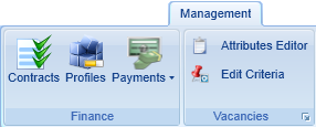 The profiling module can be opened by going to Management on the toolbar and clicking Profiles on the Finance panel of the ribbon.