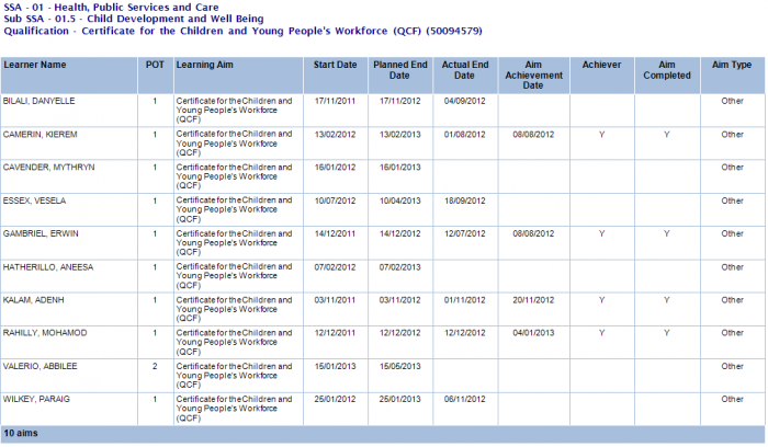 E.g. If the latest ILR export for an aim has a blank actual end date but on the ILR tab an actual end date has since been entered, the value from the tab will be used in the reports as it is assumed it will be included in an export in the future.