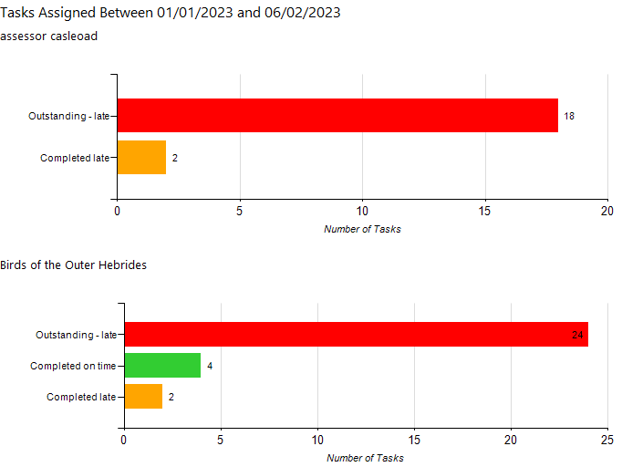 Tasks issued on or after / before - The report will show tasks where the created date is in this date range.