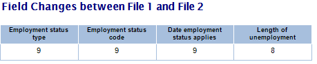 Field Changes between File 1 and File 2