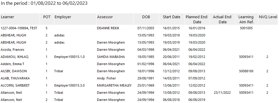 Period Start / End - The report will include learners who were in learning at any point during the date range, based on the POT start and termination dates.