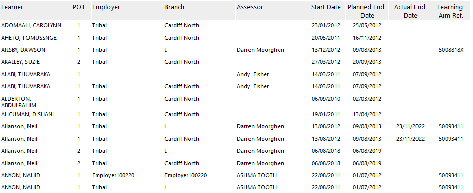 Period Start / End - The report will include learners who were in learning at any point during the date range, based on the POT start and termination dates.