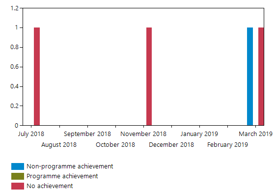 The Leaver Achievement Analysis report shows leavers over time grouped by their level of achievement. The learners included are those in the logged-in assessor's caseload, and if the user is an assessor manager, learners from their team's caseloads are also included.