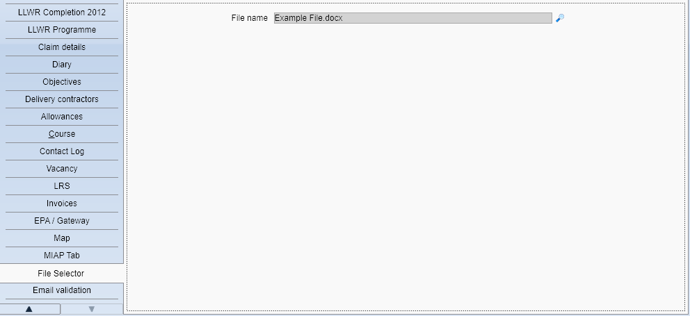 - Open a learner or employer record and go to the tab with the File Select control.