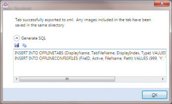 - This will generate the required SQL for e-track Offline to import the XML file as a tab.