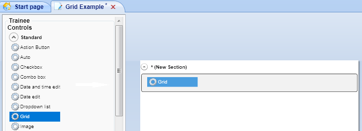 The grid will now appear on your tab / control. Please note that rows cannot be added to a grid in the screen designer – this can only be done once the tab has been published.