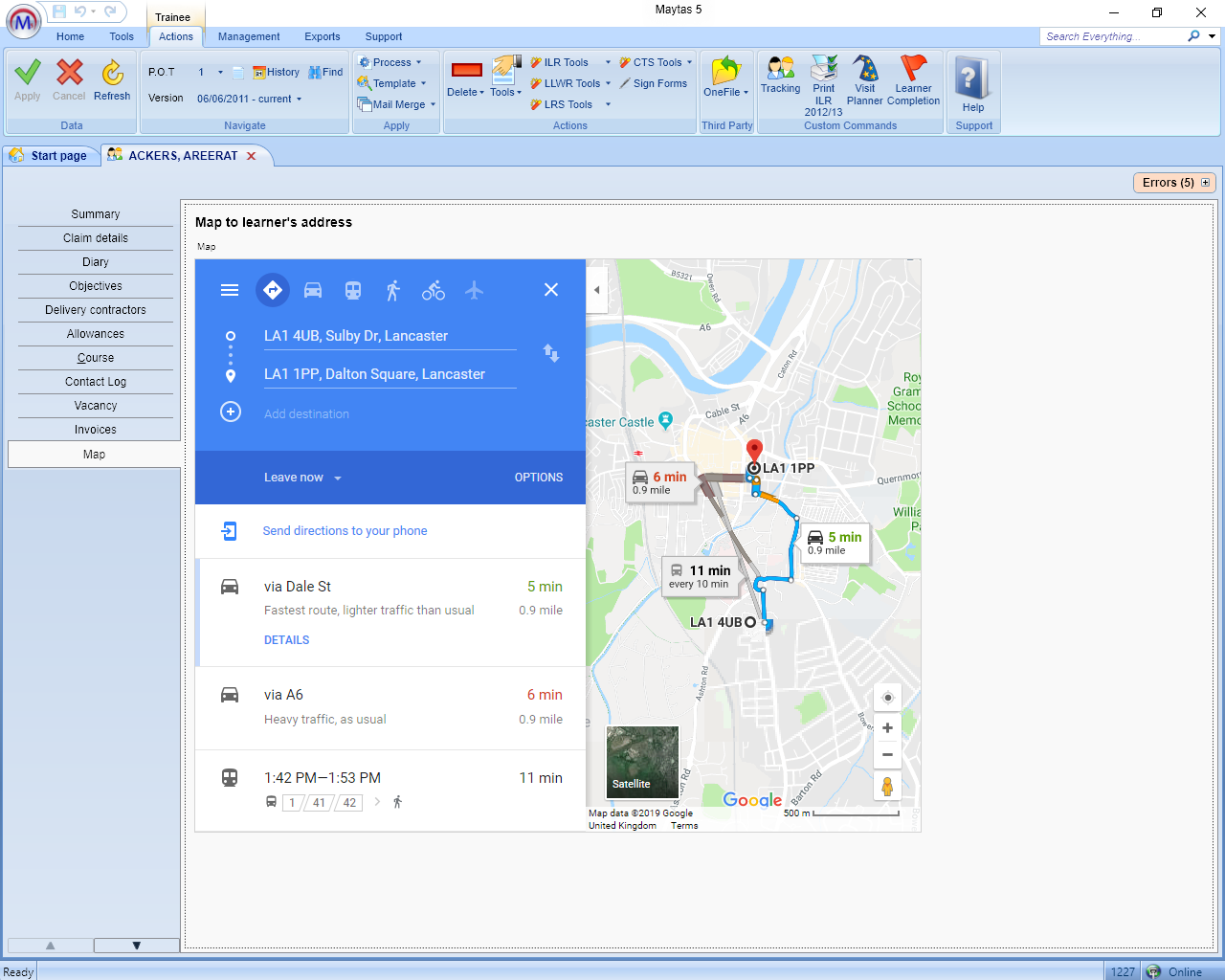 Please note that this example will only work properly with centres that have a postcode entered for them.